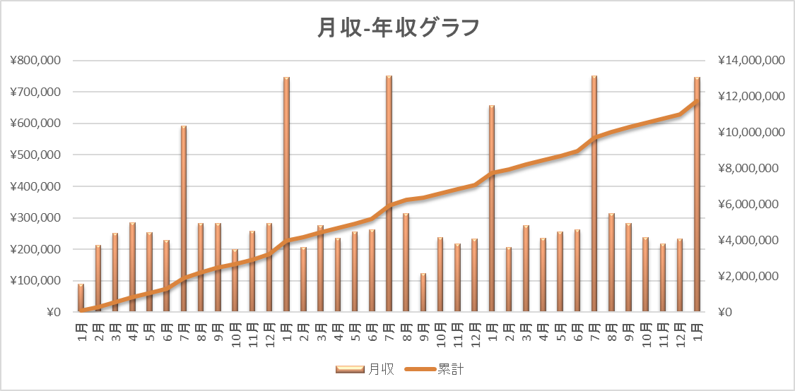 ちなみに2年目の9月の凹みについては連休月にコロナで休んだためです。そういう例外を除けば、アベレージで20万円を上回る可処分所得が得られるのは本当にありがたい。