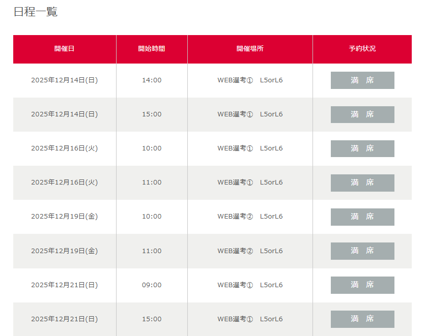 いずれのメールにも、予約の日時、ウェブ面接会場にアクセスするためのURL、ID、PWが記載されているので捨てない・埋もれないように注意してください。